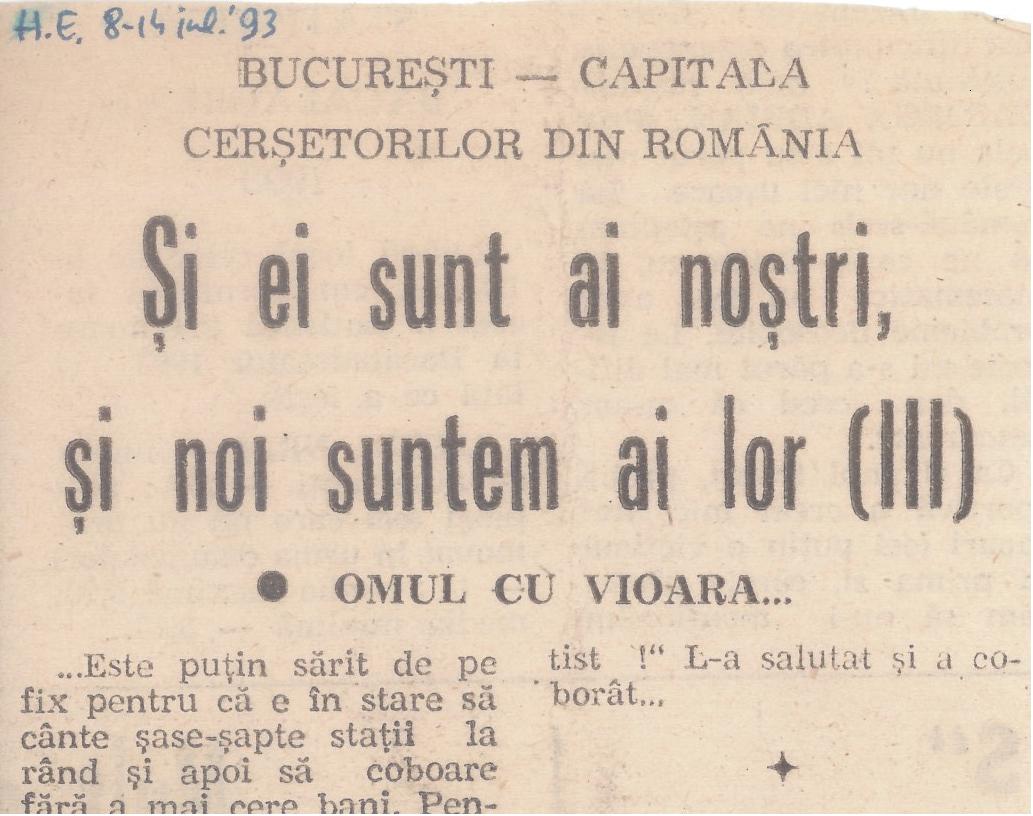 … Este puţin sărit de pe fix pentru că e în stare să cânte şase-şapte staţii la rând, apoi să coboare fără a mai cere bani. Pentru el, contează, în primul rând, cântatul. Se pare că lucrează pe cont propriu, fiindcă uneori merge acasă cu buzunarele goale dar fericit.