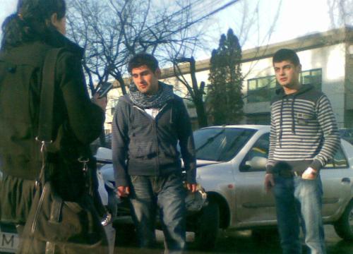 S-a alunecat rău azi-dimineată. Când am intrat pe bd. Dimitrie Pompeiu, am intrat pe patinoar. Lângă Raiffeisen tocmai se busiseră doi si blocaseră bulevardul. Mă doare si acum piciorul drept. Am pus o frână prelungă, din-aia cu brrr-scrr-cârt, de ABS. Dacă tot am oprit la timp, am făcut si o poză, cu aparatul de fotografiat.