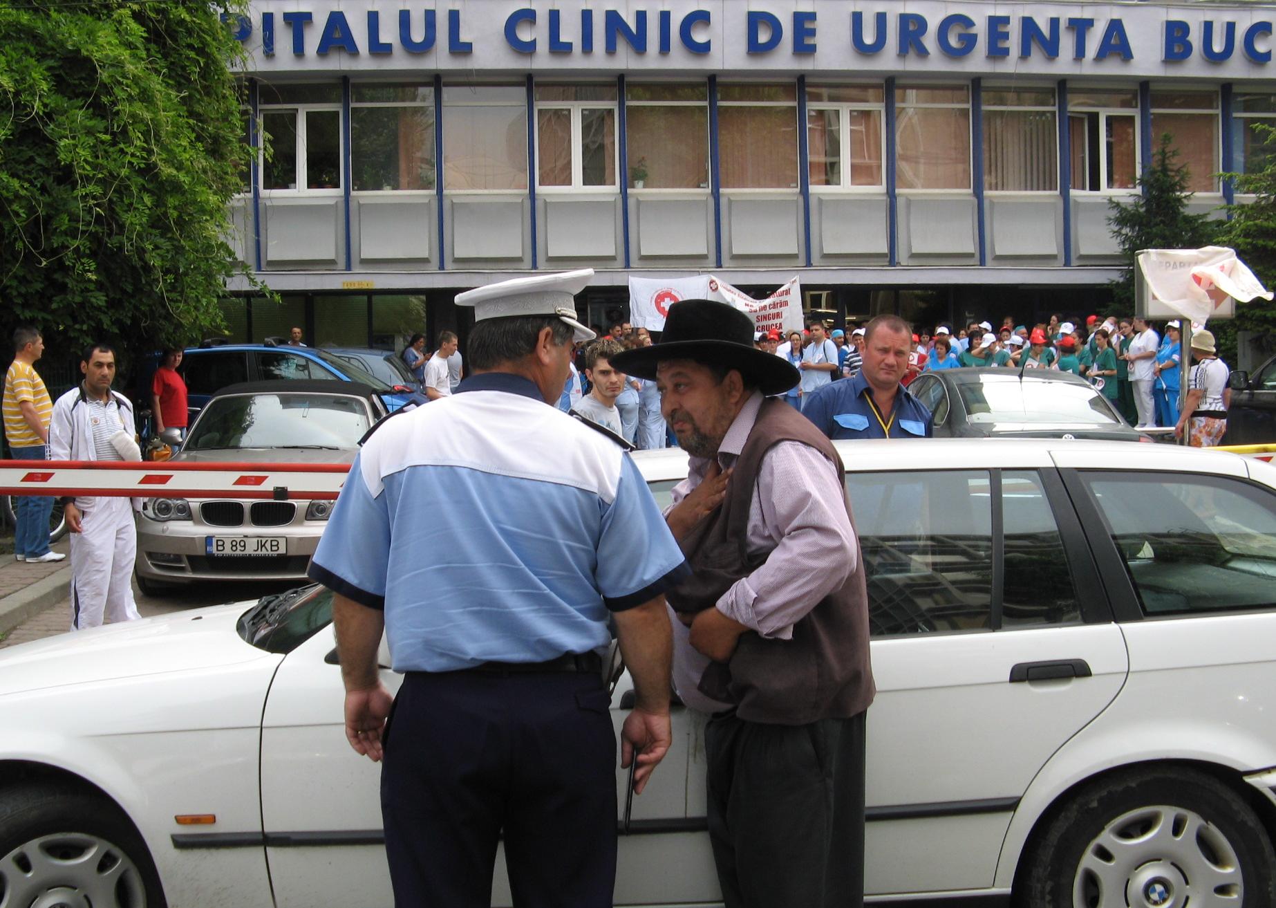 Am trecut pe lângă spitalul de urgență Floreasca. Era grevă. Cadrele medicale ieșite în fața clădirii scandau ceva. Am fotografiat, am zis să dau pe blog. Apoi am văzut ceva mai tare.