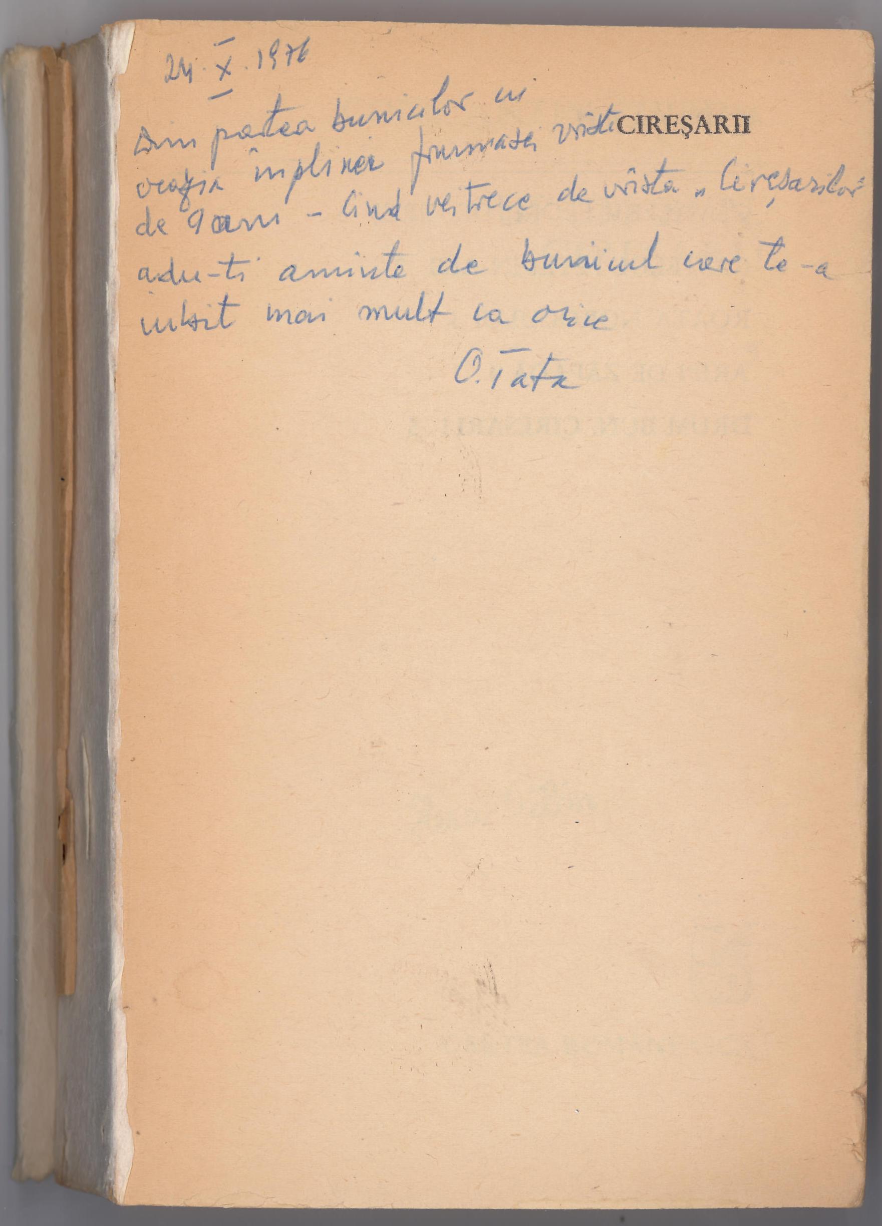 Rândurile pe care bunicul meu le-a scris pentru mine pe prima pagină a volumului 5 din Ciresarii. Mă bucur să le am, mă simt mai aproape de acel moment si mi-l aduc mai aproape, într-un fel, si pe el