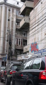 Stâlp cocoșat (la figurat) de cabluri. Foto: Calin Hera