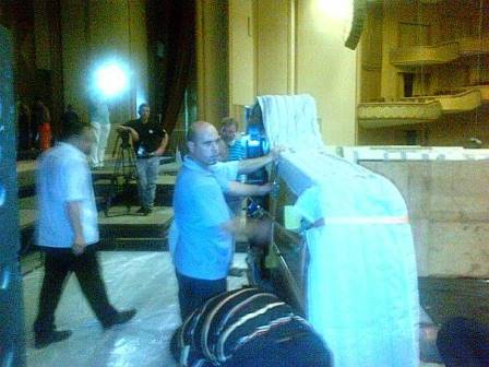 După ce am plecat de acolo, cu îndatoriri preţioase, pianul a fost aşezat şi au fost făcute primele probe tehnice, urmând ca totul să fie pregătit până la prima repetiţie. Alte detalii, aici.