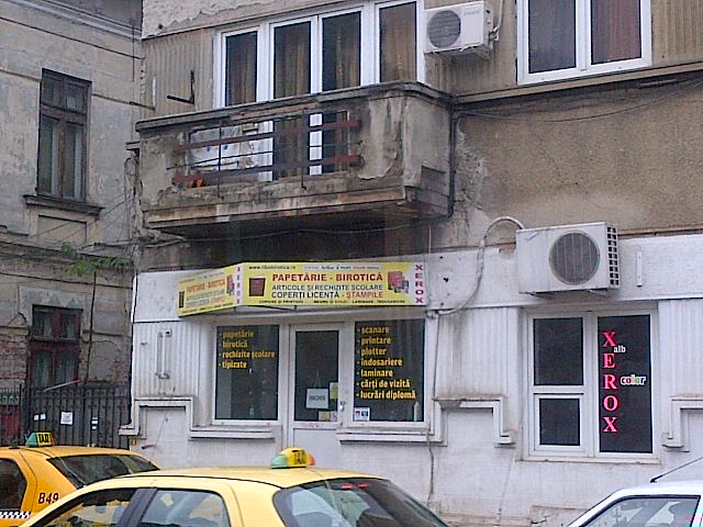 Vedere din Bucureşti. Balcoane-pericol deasupra unui trotuar de lângă Foişorul de Foc. Foto (cu telefonul): Călin Hera