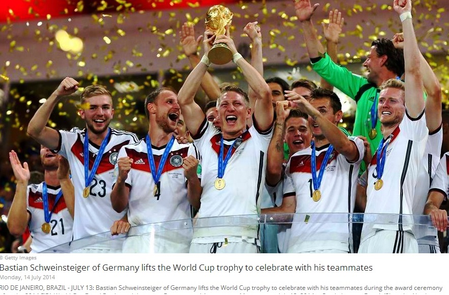 Bastian Schweinsteiger ridică, fericit, Cupa Mondială. Sursa foto: fifa.com
