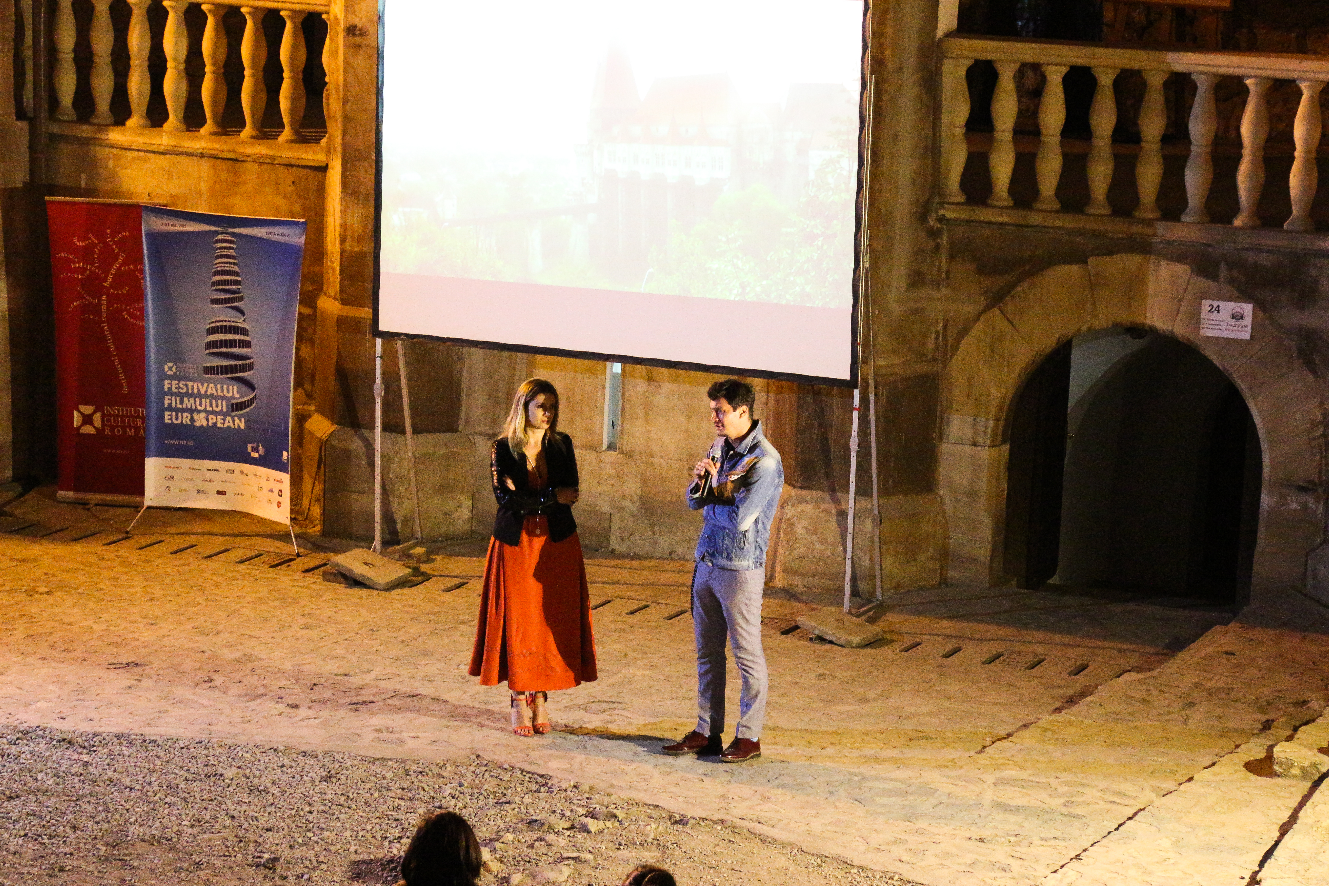 Vedere din Hunedoara. După film, întrebări şi răspunsuri cu Emilian Oprea, actorul din De ce eu?, şi Amalia Enache. Sursa: castelulcorvinilor.ro