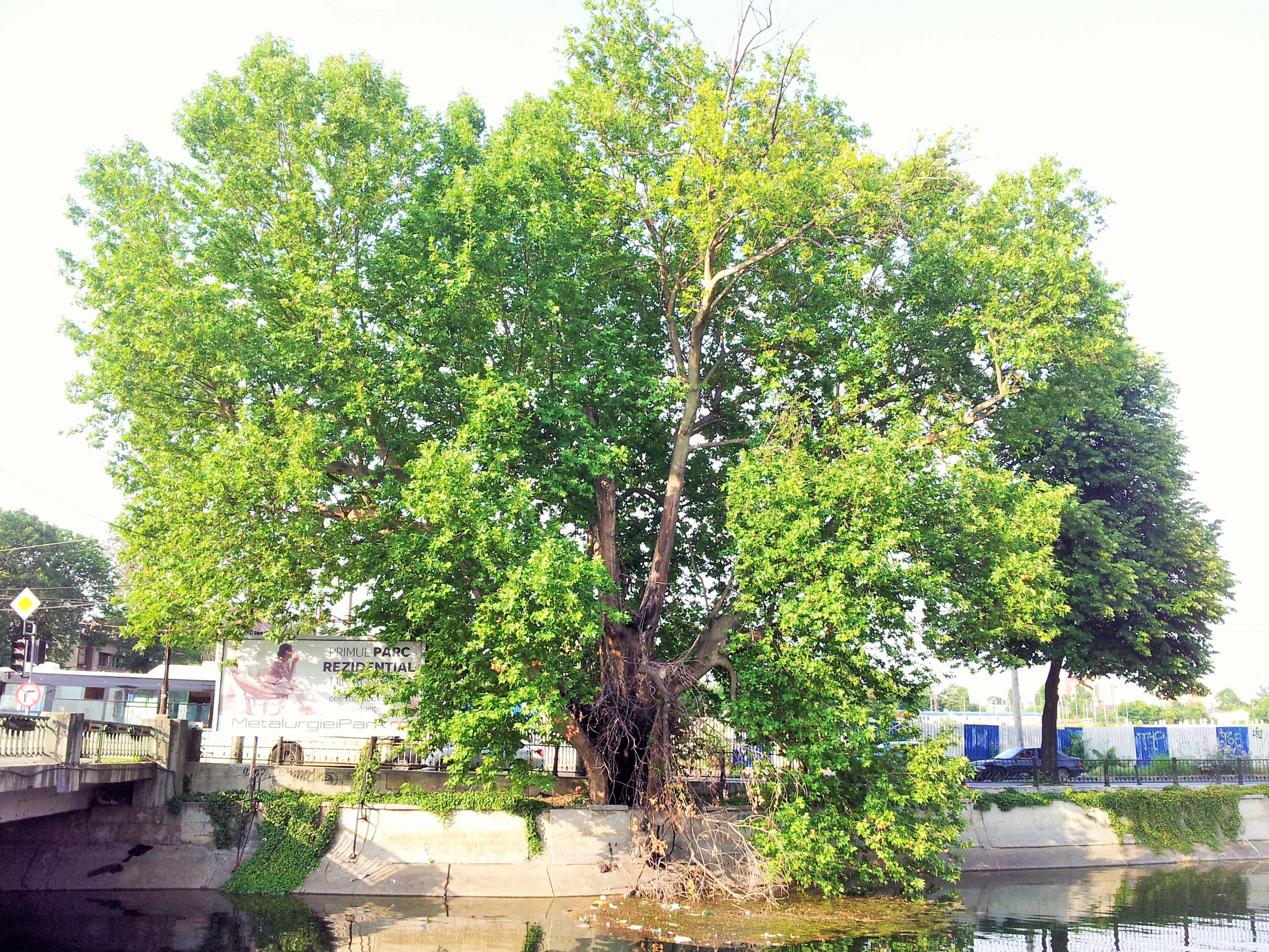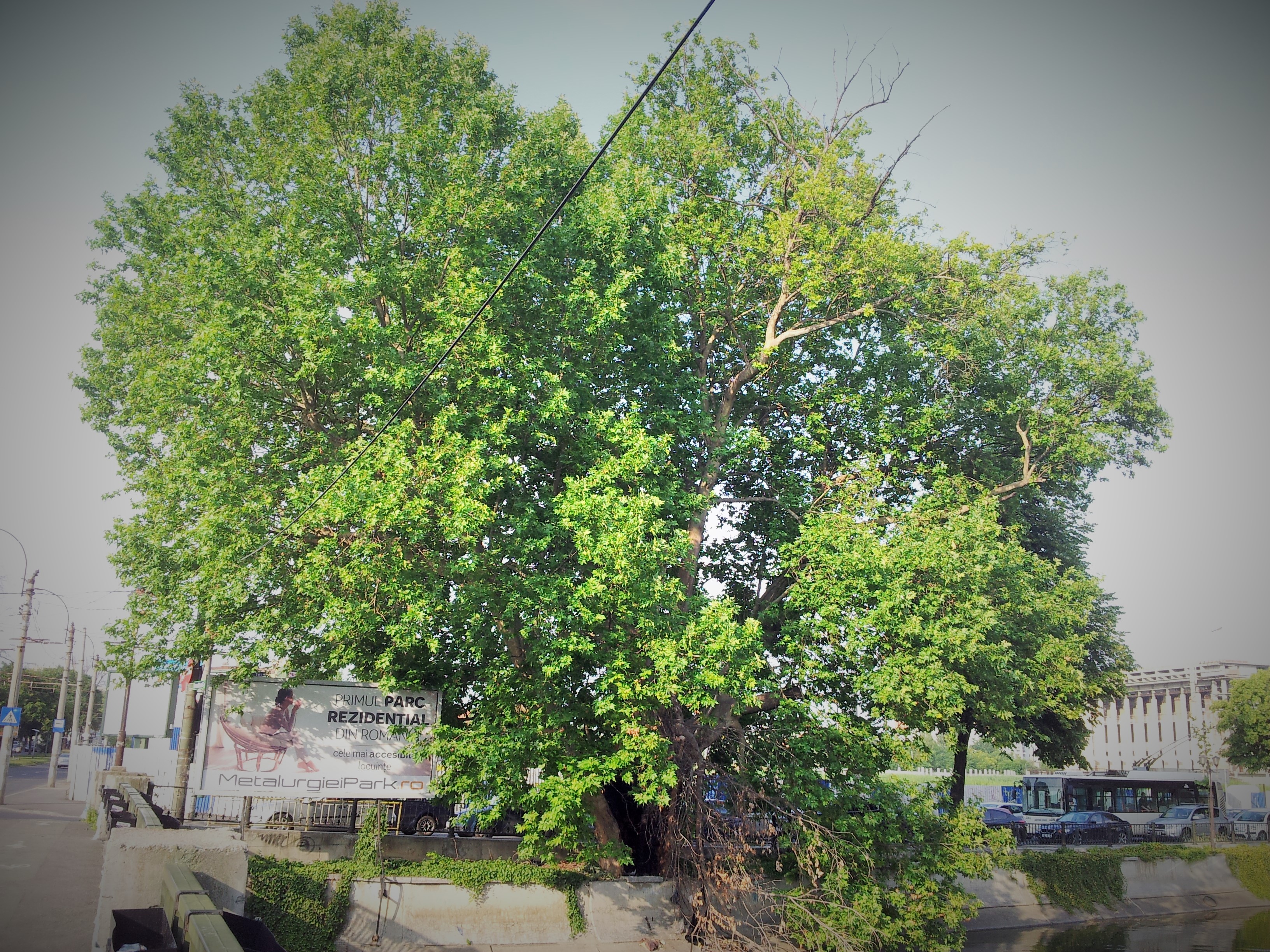 Vedere din București. Platanul de la Podul Cotroceni – bătrân, frumos, puternic și rezistent la poluare. Foto cu telefonul: Calin Hera