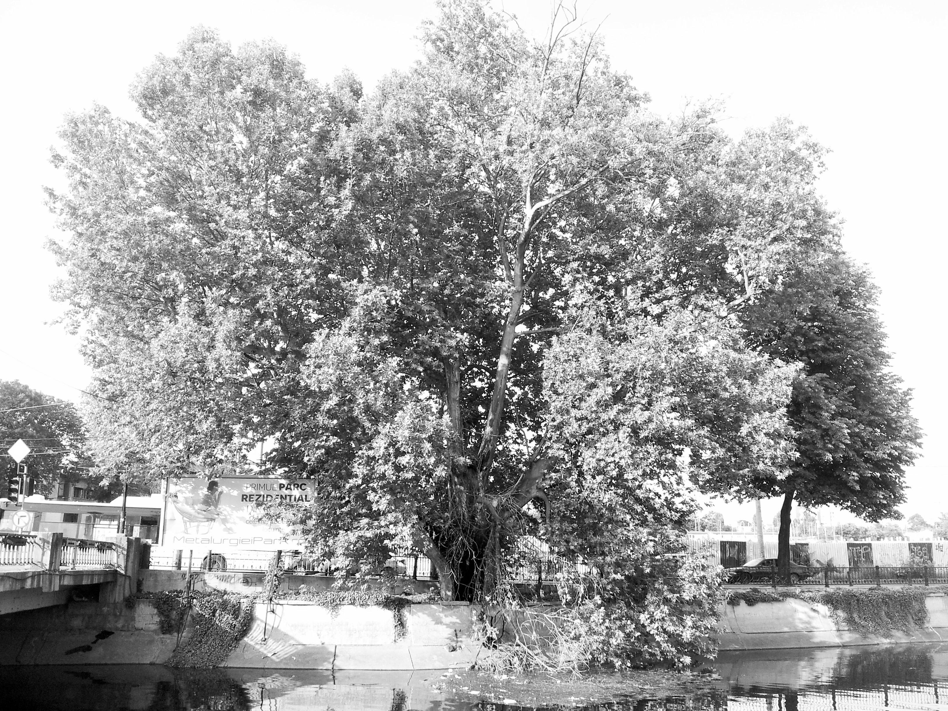 Vedere din București. Platanul de la Podul Cotroceni – alb-negru, bătrân, frumos, puternic și rezistent la poluare. Foto cu telefonul: Calin Hera (mfc)