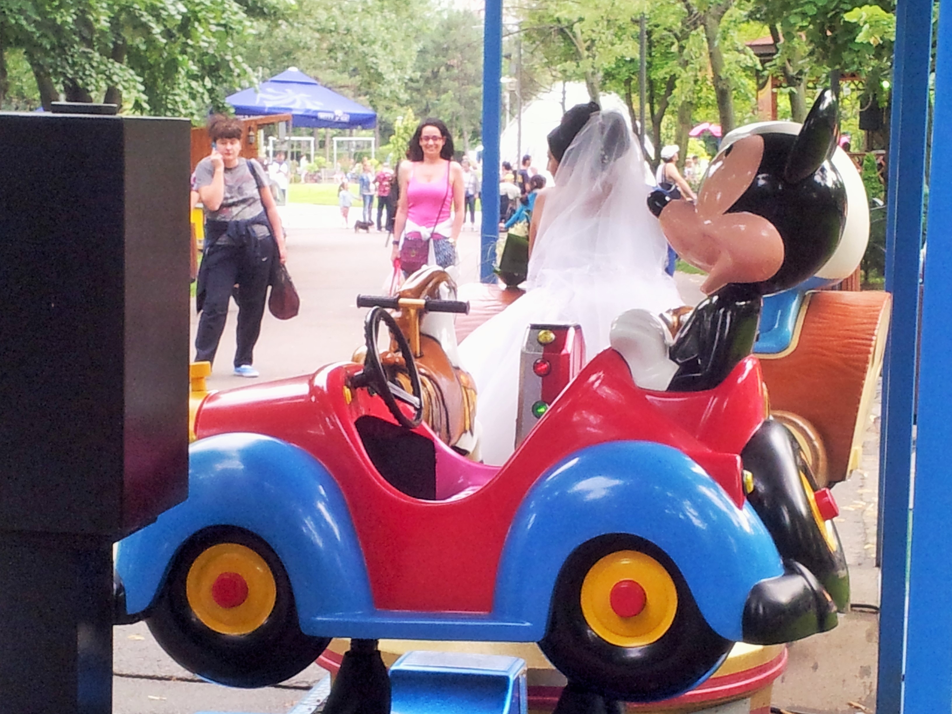 O mireasă care se respectă trebuie să-și facă poze în Parcul IOR: la intrare, la fântâni, la păuni, lângă lac, printre boscheți, pe alei, alături de Mickey Mouse sau strumfi. Asta pare a fi moda zilei.