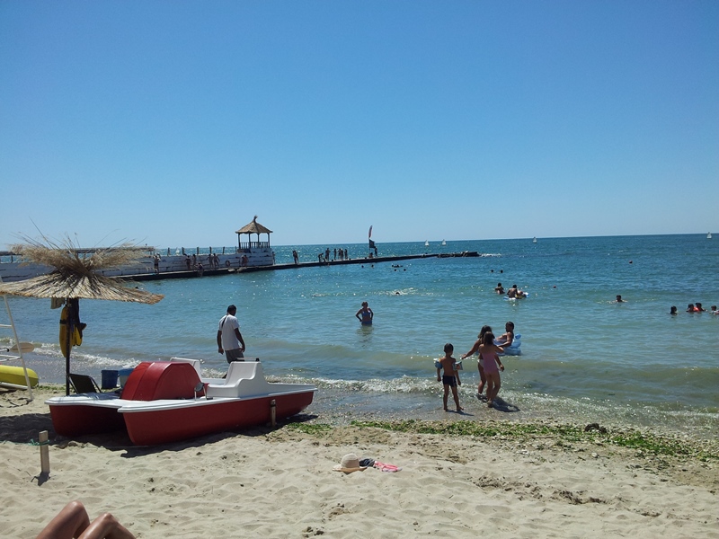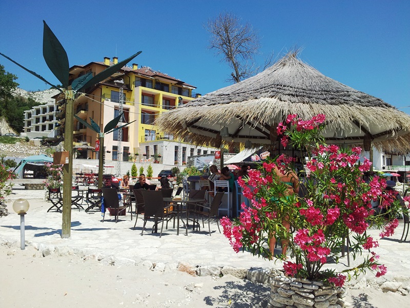 Ar putea să vă deranjeze, dacă nu ați făcut de pildă niciun concediu în Croația, faptul că plaja e destul de îngustă și intrarea în mare se face printre pietre. Mie mi s-a părut OK, am văzut și copii de 5-6 ani bălăcindu-se. Și, toată lumea știe, dacă plaja e mai îngustă, sunt mai puțini oameni în jur. Și lipsesc cei care strigă că vând porumb sau pepene roșu (îi găsiți la Albena sau la Nisipurile de Aur, dacă țineți morțiș).