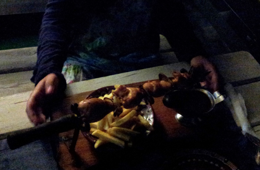 Am comandat frigărui (bucăți uriașe de pui, preț de două piepturi zdravene, înșirate pe un pumnal de 35 cm așezat pe un stativ din fier forjat), scoici de toate felurile foarte bine pregătite, ditamai grămada, ciorbe și supe (inclusiv o specialitate locală, cu iaurt, de servit rece), pește, pizza, paste (cui îi plac, îi recomand pastele cu fructe de mare). Am mâncat înghețată de vanilie (preferata mea), de ciocolată, de tot felul de fructe, de violete. Am băut sucuri pe care nu le-am întâlnit la noi, am degustat vinuri foarte bune și le-am băut berea. Am comandat de fiecare dată Kamenitza, mi s-a părut OK, acolo, la halbă. Am adus și acasă două sticle, parcă nu mai avea același gust.