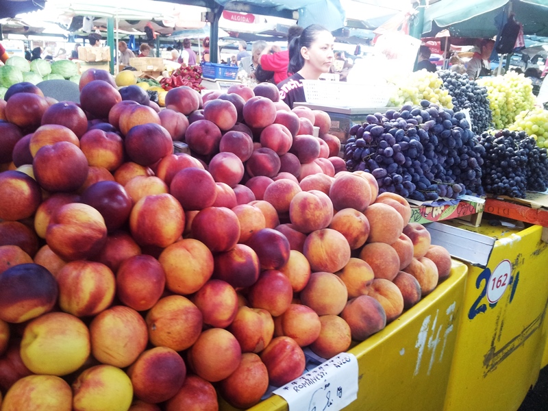Dincolo de ei sunt tarabele cu fructe, vedetele pieţei de toamnă. Struguri. Festival de struguri. Ceasla de la 2,50 la 3,50 de lei, aduşi din Vrancea, cei mai gustoşi şi mai perisabili struguri pe care îi poţi cumpăra dintr-o piaţă bucureşteană. Mere de vară târzie, tari, coapte bine, de parcă abia ar aştepta să crape de bucurie că sunt admirate, să arunce în tine cu seminţele lor alb-cenuşii, să te cucerească pe veci, adică până la vremea mustului, care se apropie, deja găseşti pe tarabe sticle de must, 10 lei litrul la Piaţa Râmnicu Sărat, 8 lei la Obor.