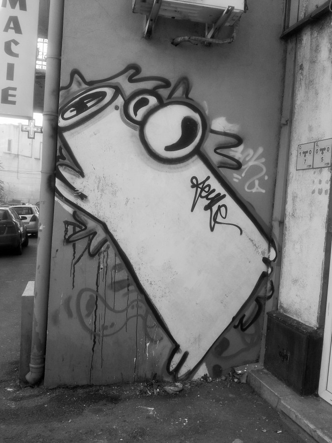 Vedere din București. Aeul diagonal alb-negru de pe strada Colței. Foto cu telefonul: Călin Hera