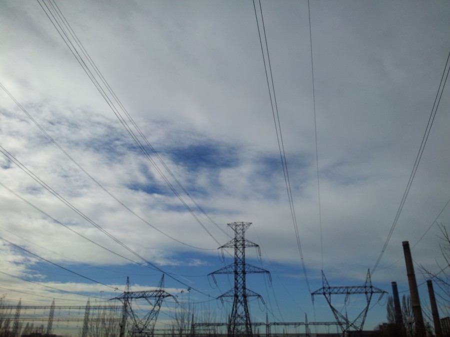 Vedere din București. Înaltă tensiune sub un cer cu nori simpatici. Se ghicește și un pic de soare. Foto cu telefonul: Călin Hera