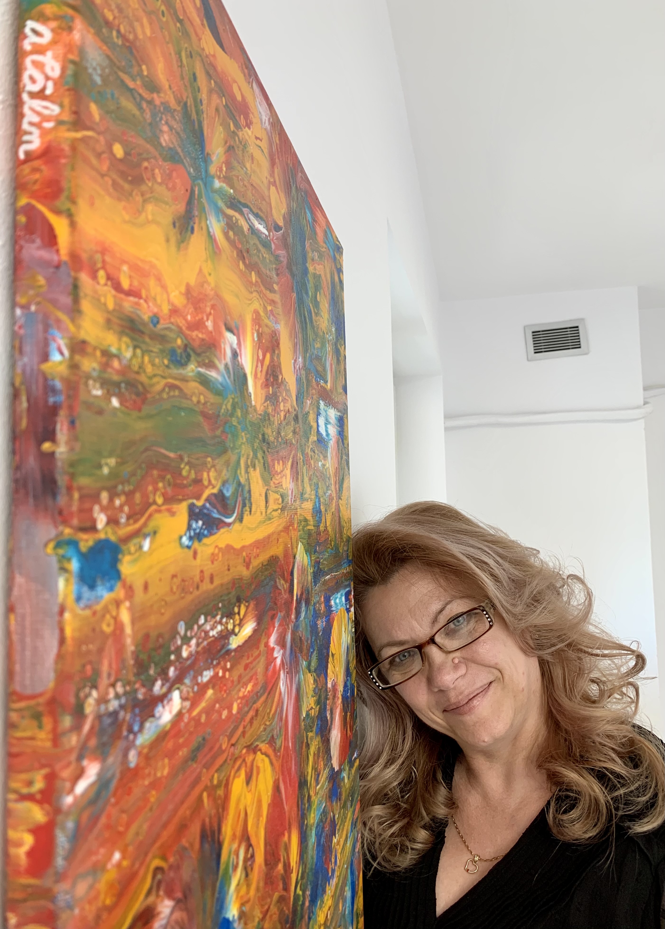 N-am căutat rime în tablourile Anei Călin. Nici în cele aflate pe peretele din stânga, mai altfel decât celelalte, parcă mai „sigure”, mai așezate, nici în celelalte, mai năvalnice, mai exploratoare, dornice să descopere, să vuiască, să te oprească din loc pentru a merge apoi, mai departe, împreună cu ele. Culorile nu rimează. Nu se asortează. Culorile trăiesc sau nu împreună. Pot isca. Pot crea forme.