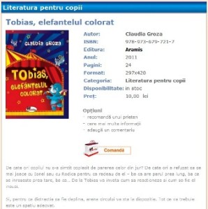 Prietena noastră din blogosferă și de la vreo două lansări de carte ;), Claudia Groza, a mai publicat ceva: Tobias, elefănțelul colorat.