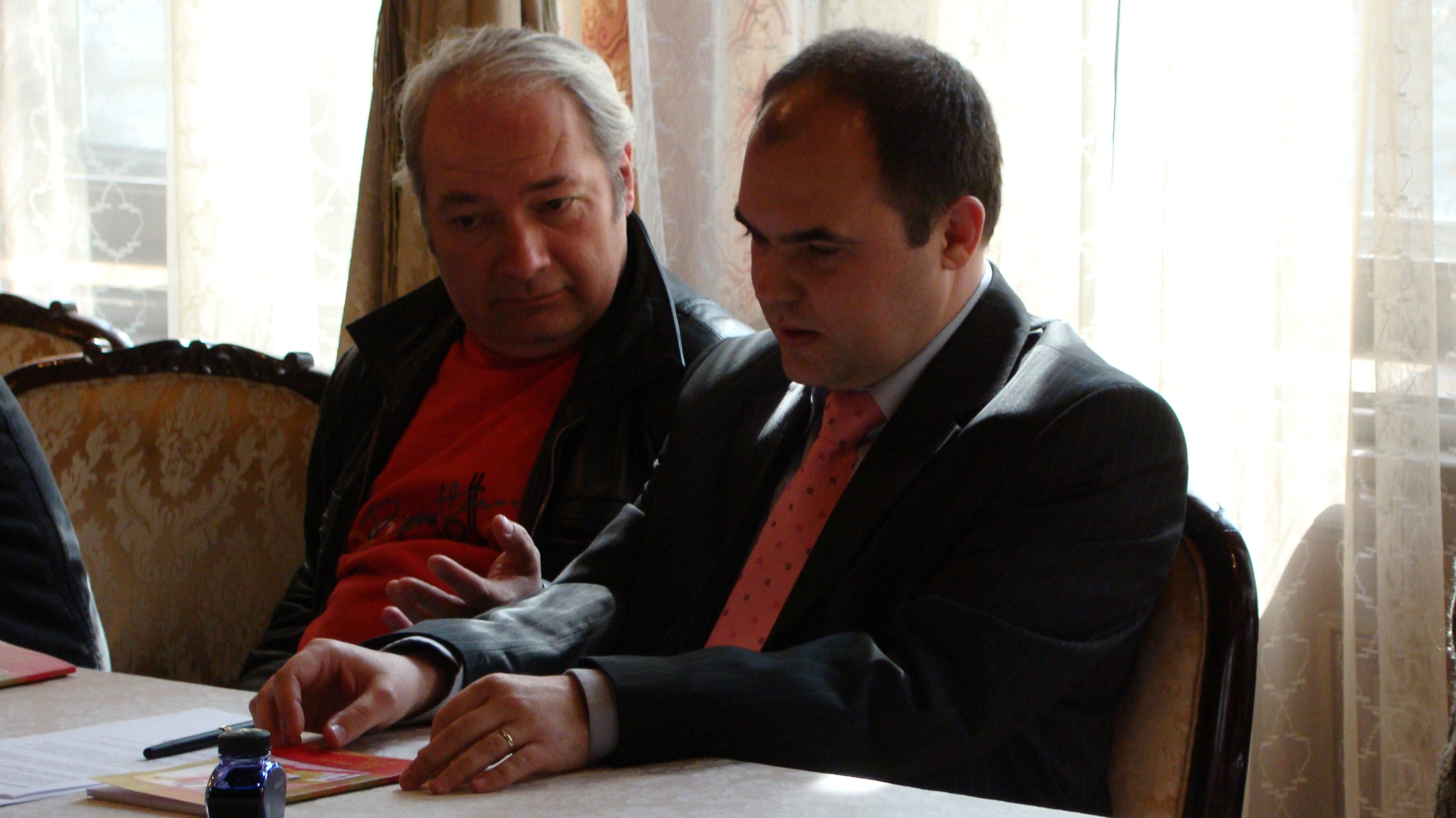 Profit de ocazie ca să vă arăt o fotografie de la lansarea care a avut loc în Bucuresti, de Florii. Apar, aici, alături de Mihail Gălătanu. Cred că fotografia a fost făcută de cell61. Dacă mă însel, corectati-mă!