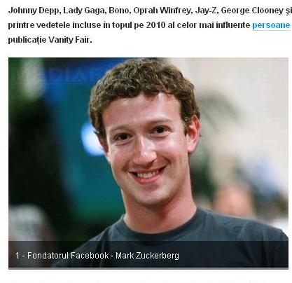 Am ales să încep această postare punând fată în fată două fotografii: una a lui Mark Zuckerberg, fondatorul Facebook (am luat fotografia făcând un printscreen de aici) si alta a lui Jesse Eisenberg, actorul care îl interpretează pe Mark în The Social Network.