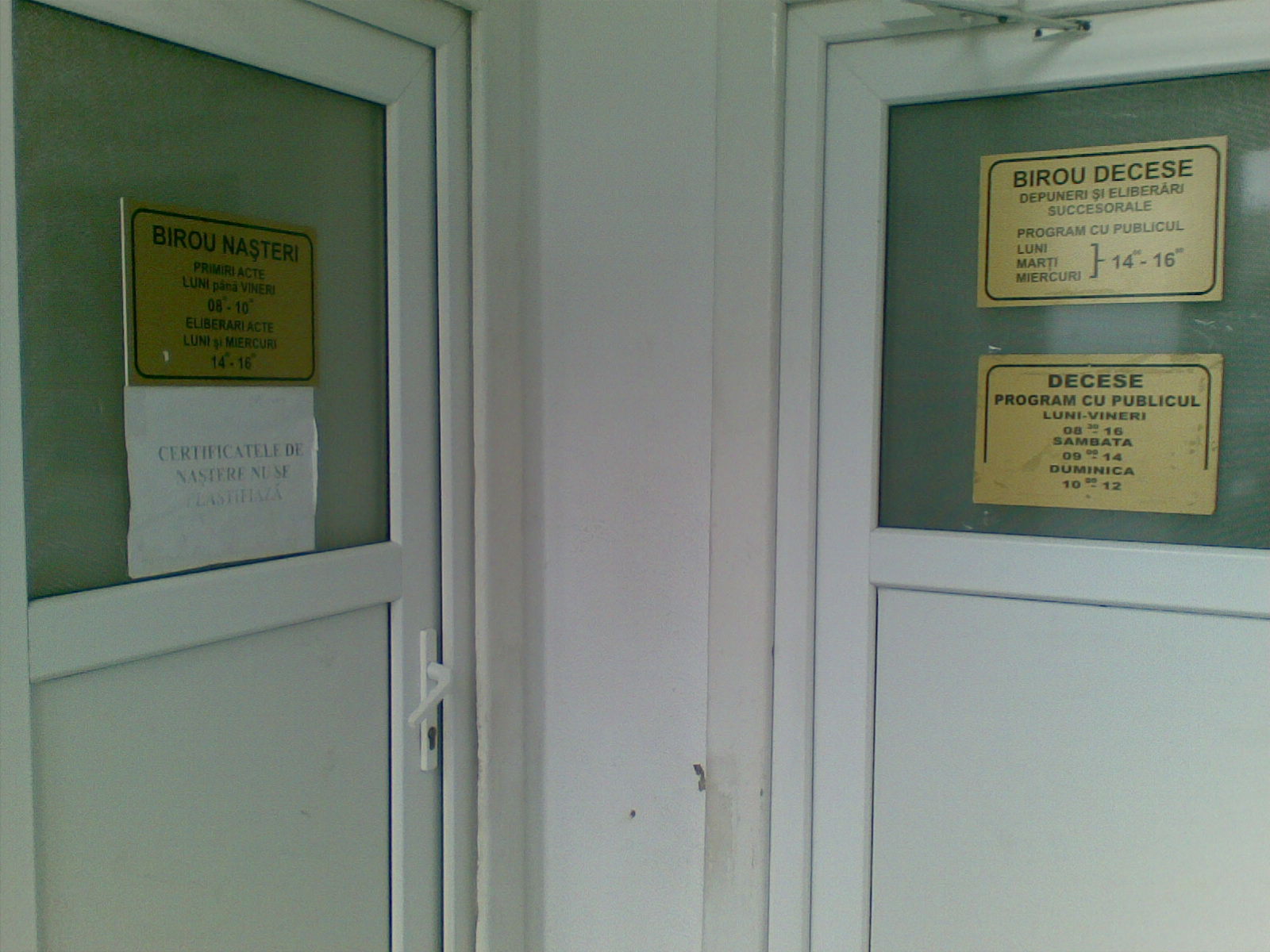 Fotografia a fost făcută cu telefonul mobil, în timp ce asteptam să deschid una dintre cele două usi. De data asta, a fost usa din partea dreaptă…