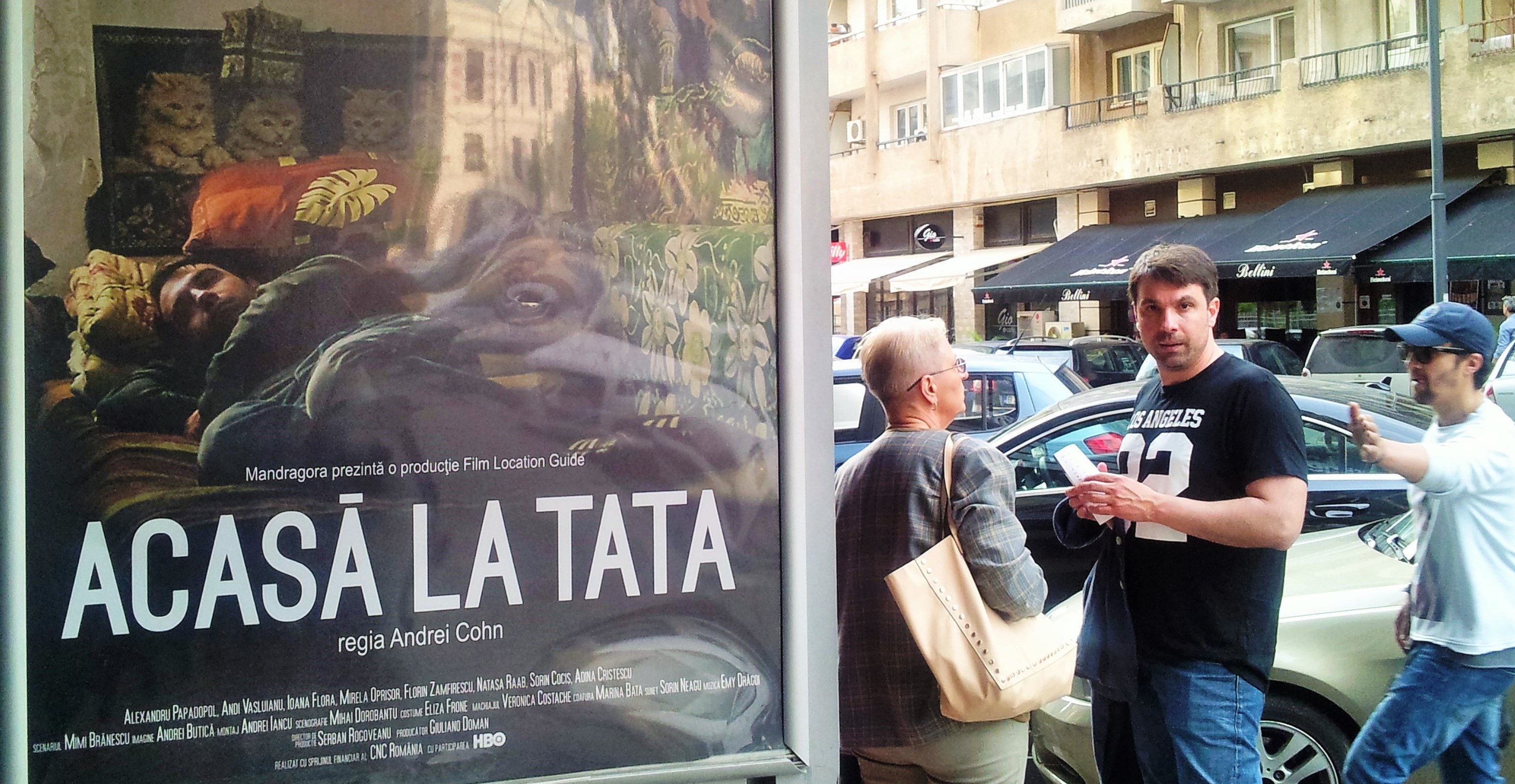 Vedere din București. Alexandru Papadopol, așteptând premiera filmuui Acasă la tata (2015). Foto cu telefonul: Călin Hera