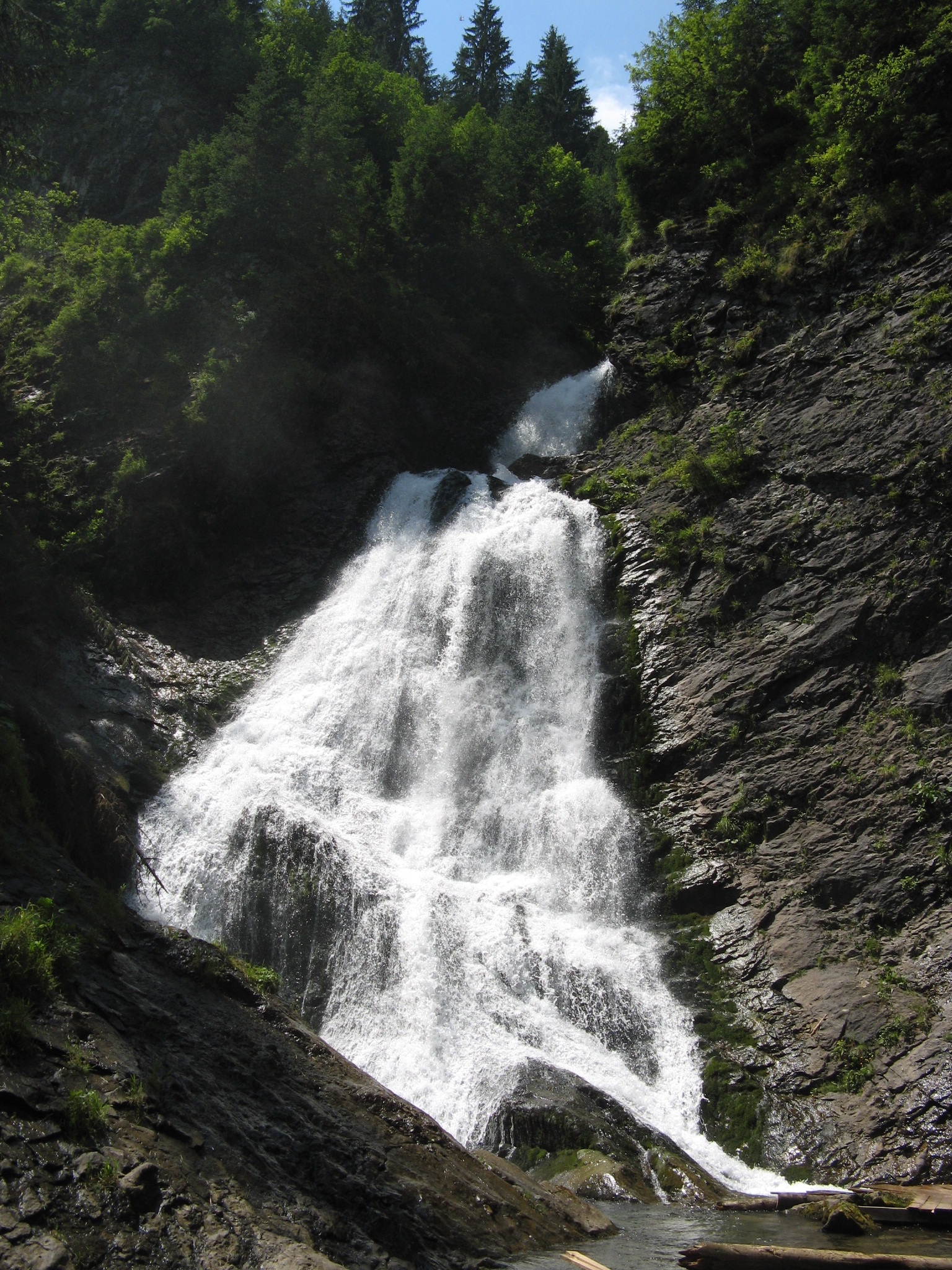 Aici e cascada, în toată splendoarea ei. E chiar ca un voal de mireasă, nu-i asa? Legenda spune, de altfel, că era o mireasă care a căzut în râpă si nuntasii au plâns de-au rupt, iar din lacrimile lor samd.
