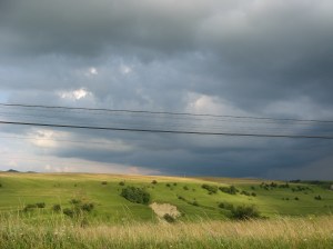 Bucată de cer văzută pe dealurile comunei Mărgău. Se apropia o ploaie strasnică. Intersant e si cât de multe cabluri apar aici.