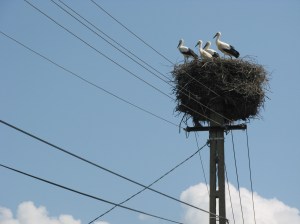 Am urcat niţel în casa oamenilor – mă rog, în cuibul berzelor. Indiscret, deh. Dar tot nu-mi dau seama care-s puii, care părinţii. (Click pe foto pt imagine mărită!)