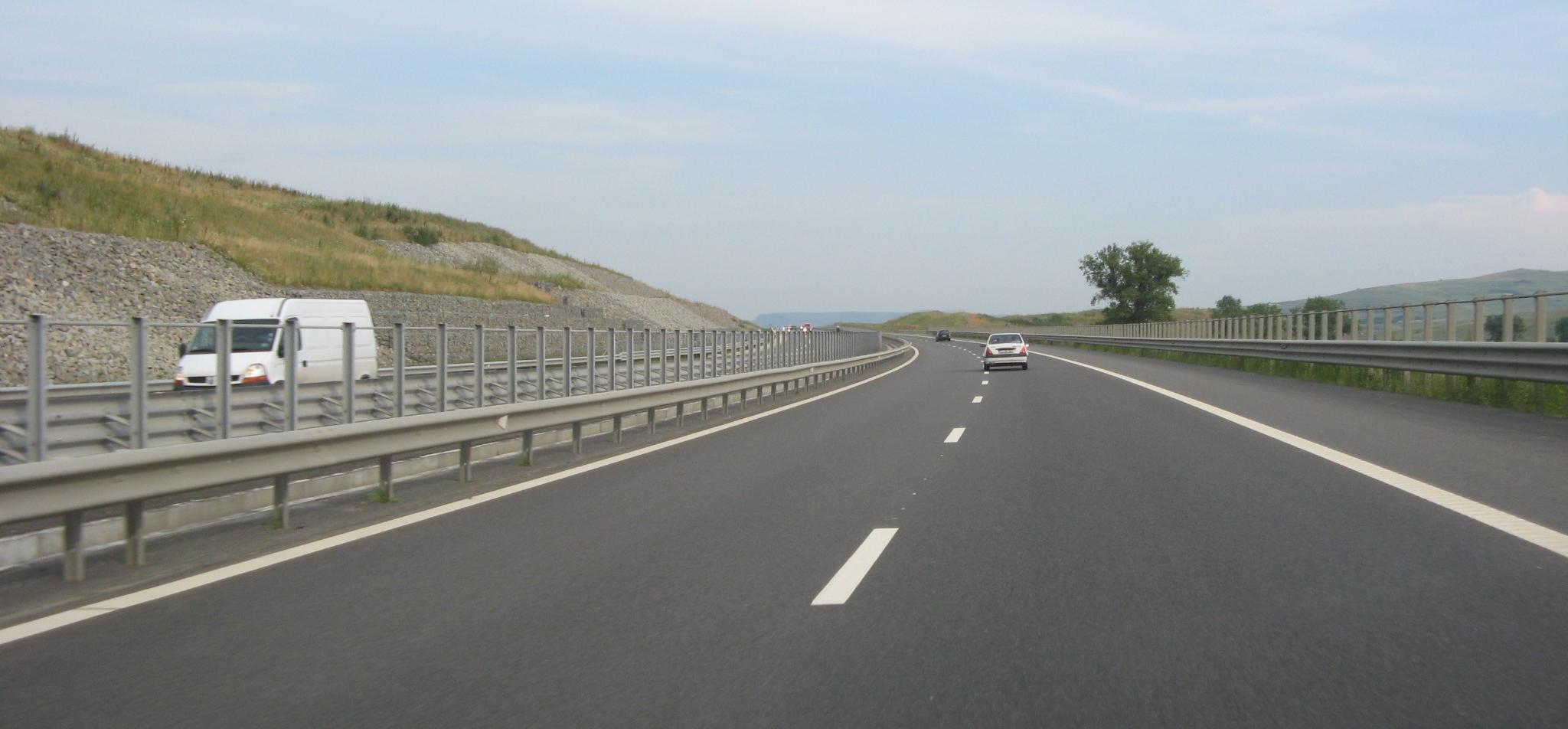 Am mers cu masina pe drumul făcut de Bechtel. Am parcus cei 40 de kilometri (40 si ceva) care-s gata, între Turda si Gilău (apoi retur) în vreo 20 de minute (am condus regulamentar). Asfaltul pare bun (n-am făcut testul cu paharul de apă numai ca să pot fotografia 🙂 ), iar faptul că soseaua merge printre dealuri m-a făcut s-o socot ca fiind muuult mai faină decât bătrâna A1 Bucuresti-Pitesti sau bucata A2 Bucuresti-Fetesti. Chiar m-am gândit la autostrada făcută de greci, de la Salonic către Corfu. Iaca si o fotografie făcută din masină.