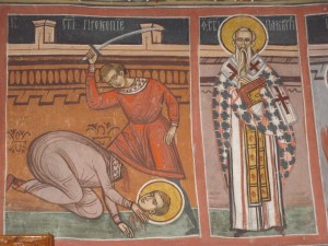 Până la primul horn de sub Mytikas se fac 15 minute (drum lejer, pe curbă de nivel). Ascensiunea prin horn e dificilă (la fel coborârea). Totuşi, e preferabilă pentru cei cât de cât antrenaţi. Varianta cealaltă este ocolul, pe curbă de nivel, până în şaua din care se începe urcuşul spre vârful Skala (un urcuş lesnicios, dar lung, de transpiraţie). Mai e, pe traseul „curba de nivel”, o ieşire-horn, chiar sub vârful Skala (2.866 m), un horn mai puţin dificil.
