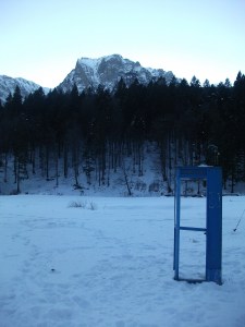 Cabină telefonică fotografiată în Munţii Bucegi de Călin Hera (februarie 2011). Click pe foto pentru imagine mărită!