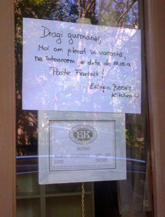 Afiş la intrarea într-un local de pe str. Mihai Eminescu din Bucureşti. Foto (cu telefonul): Călin Hera